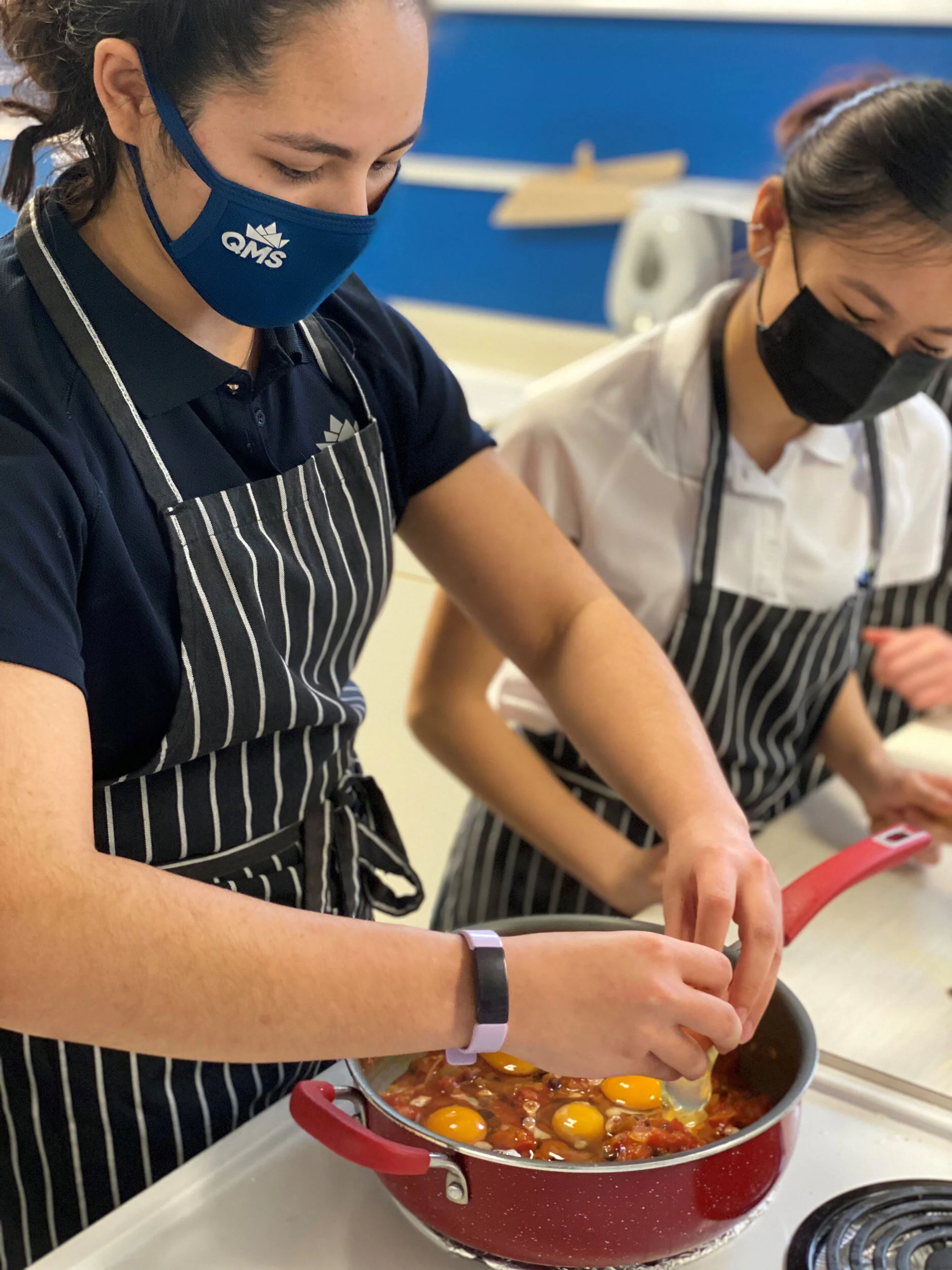 The cultural geographic component is an important part of the culinary arts program. “We are looking at culture through food, so you’re going to get the history as well,” Dickens says. “We focus on foods that change the world as well as the science of food. For example, why is spice hot? How does it affect your tongue? What do you taste?” QMS students also have the opportunity to incorporate food from two cultures into a single dish.